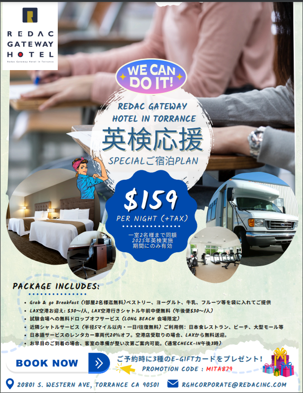 ホテル予約は個人とホテル間との契約となります。英検、またMITAはいかなる場合にも関与致しかねますので、ご了承ください。